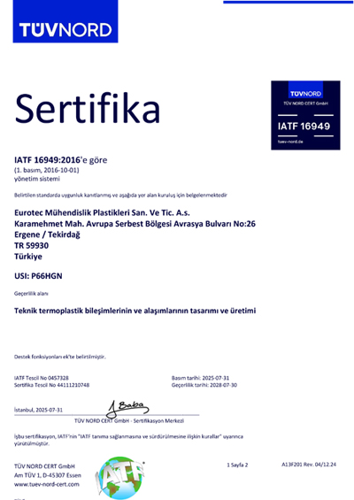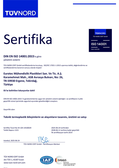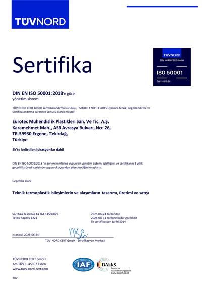 eurotecMühendislik Plastikleri Sanayi ve Ticaret A.Ş. olarak vizyon, misyon, ilke ve değerlerimiz doğrultusunda oluşturduğumuz yönetim sistemlerimiz ile sürdürülebilir kalkınmaya katkıda bulunmayı ve sektörümüzde en saygın olmayı amaçlıyoruz.